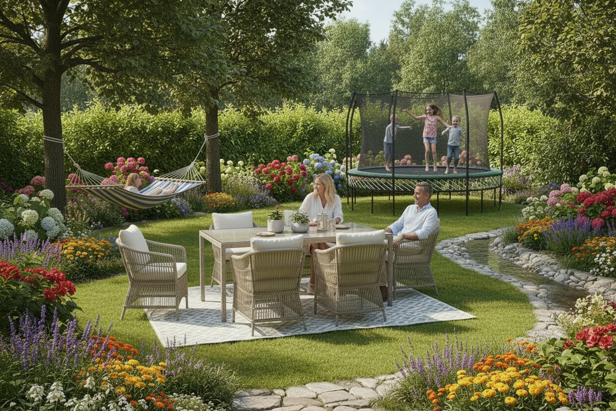 From relaxed setups to active moments with garden furniture, trampolines, and sports gear